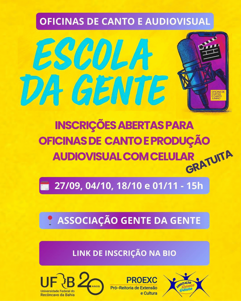 A Escola da Gente abre inscrições para duas oficinas: produção audiovisual com celular e aulas de canto.