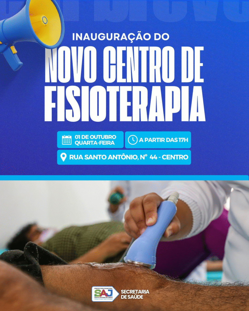 A Prefeitura Municipal de Santo Antônio de Jesus, através da Secretaria Municipal de Saúde (SMS), realizará a inauguração do novo Centro de Fisioterapia da cidade.