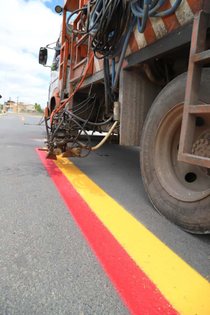 Com apoio da Superintendência Municipal de Trânsito (SMT), equipes trabalham na instalação da sinalização viária, garantindo segurança aos condutores de veículos e aos pedestres e ciclistas. Nesta semana está sendo implantada a sinalização horizontal, com pintura das linhas do eixo central, das divisões seccionadas da pista e demarcação da ciclofaixa. A sinalização vertical também já está instalada ao longo de toda a avenida, com placas de limite de velocidade, travessia de pedestres, parada obrigatória, entre outras.
