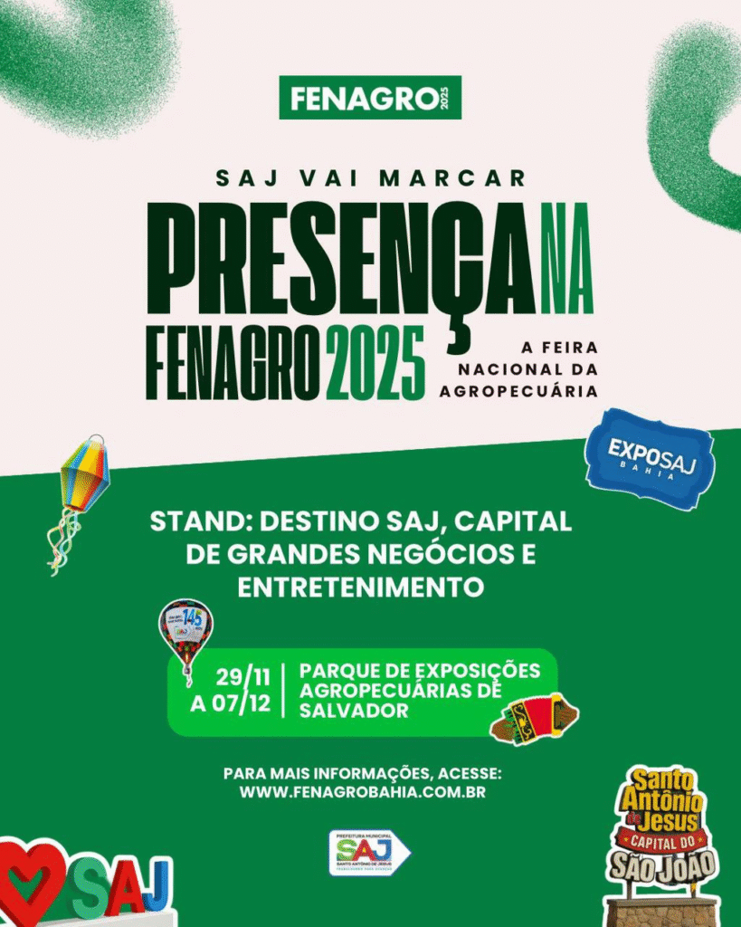 Um espaço que carrega a identidade, a força e as tradições do nosso povo, destacando tudo que faz de Santo Antônio de Jesus uma referência no Recôncavo: o nosso grandioso São João, a ExpoSAJ, o comércio vibrante, o turismo rural e muito mais.