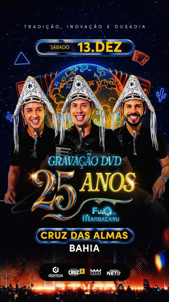 O município de Cruz das Almas, localizado no Recôncavo da Bahia, foi o escolhido para a gravação do DVD comemorativo dos 25 anos de história da Banda Fulô de Mandacaru, único grupo de forró a ter vencido um reality show musical promovido pela TV Globo. A cidade, que é um dos principais destinos de festas juninas do Brasil e tem uma paixão pelo principal ritmo nordestino, vai sediar o evento no dia 13 de dezembro, data marcante, pois é o Dia Nacional do Forró e aniversário de nascimento de Luiz Gonzaga. A iniciativa tem o apoio da Prefeitura local e da Crown Produções, além de outros parceiros.