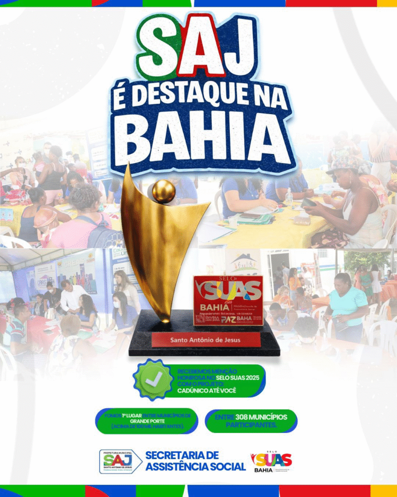 O Selo SUAS Bahia é uma iniciativa vinculada ao Sistema Único de Assistência Social, que avalia e reconhece boas práticas na gestão da assistência social em todo o estado. O destaque de SAJ reforça a importância de políticas públicas bem executadas, com foco na inclusão e na cidadania.