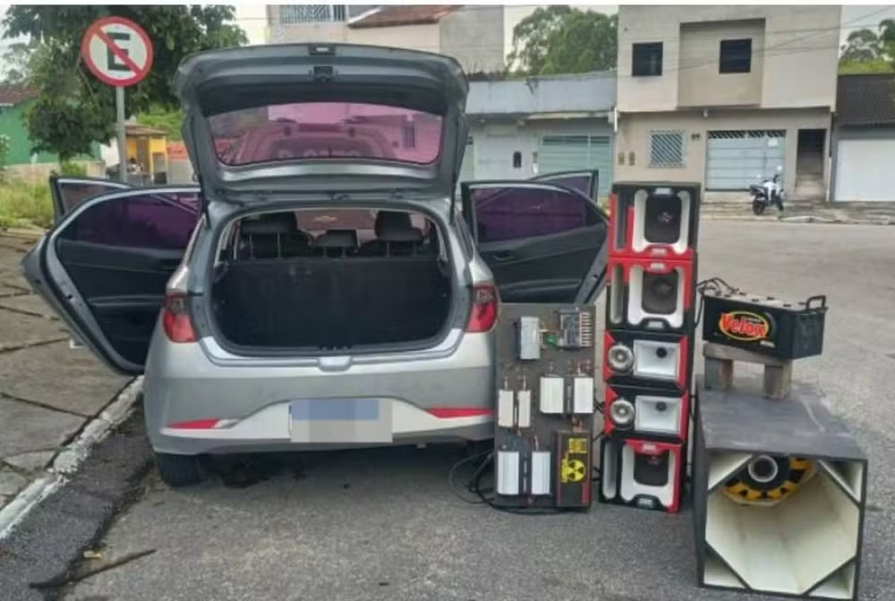 Os policiais ainda recolheram diversos equipamentos sonoros considerados irregulares, como alto-falantes, módulos, cornetas, tweeters, processador de áudio e uma fonte automotiva.